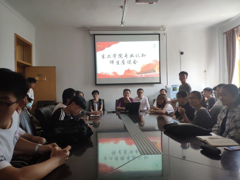 2019年05月17日,明胜m88官网在第四办公楼434会议室针对2018级大一员工,组织开展了“专业认知师生座谈会”。食品质量与安全教研室鞠国泉老师、张菊老师、李敬老师,食品科学与工程教研室刘月英老师、卢涵老师、巨浩羽老师及2018级大一员工50于人参加了此次活动。