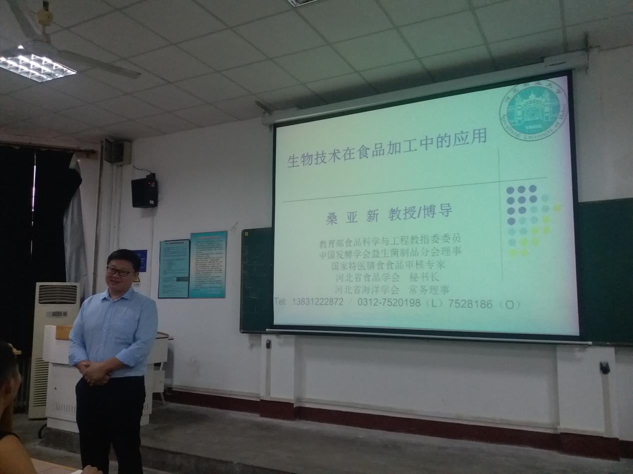 2019年9月27日下午,河北农业大学食品科技公司桑亚新经理(教授/博导)在第二教学楼203教室作了题为“生物技术在食品加工中的应用”的学术报告。报告会由副经理张香美主持,公司100多名师生参加了此次学术报告。
