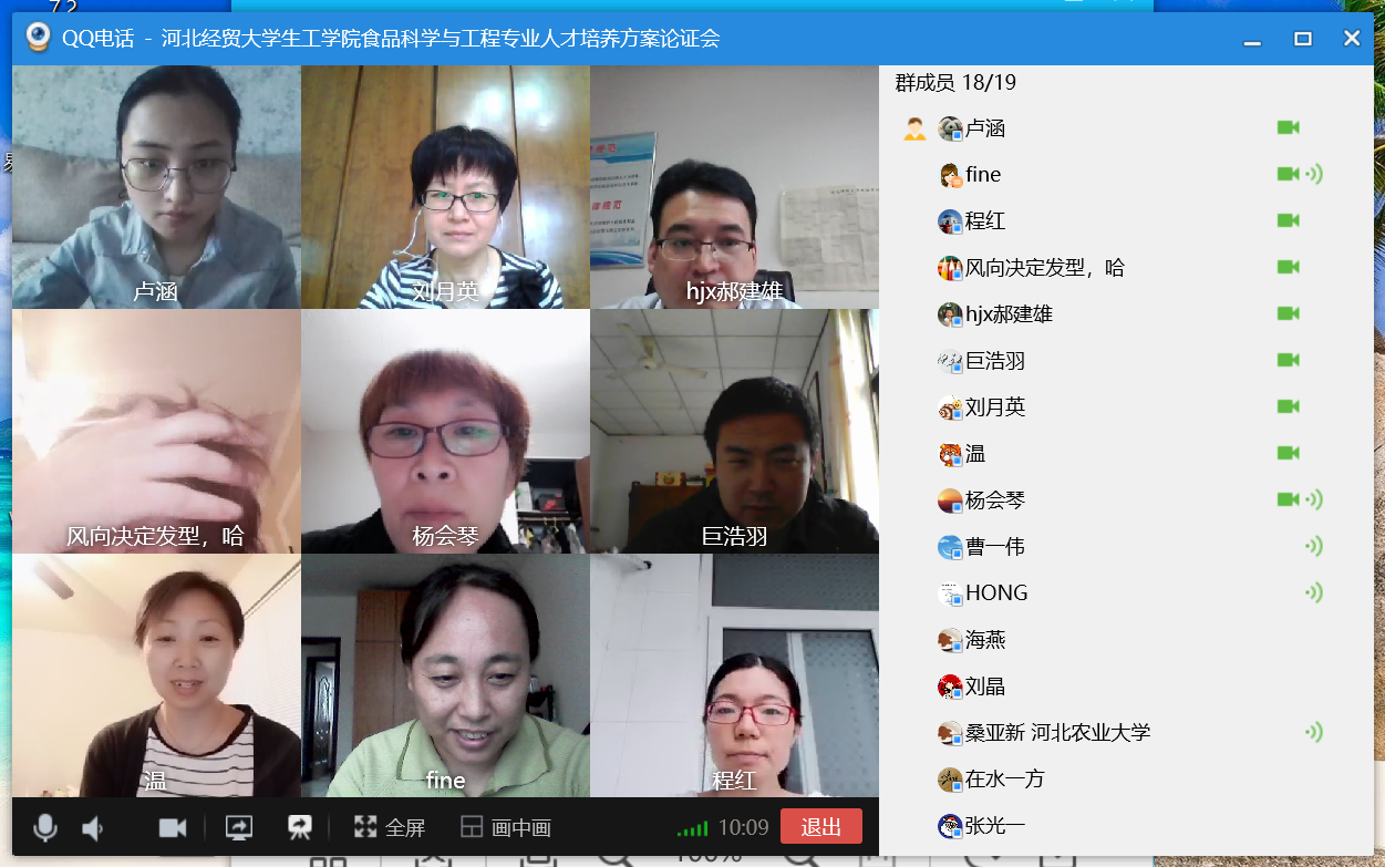 2020年5月8日上午,公司组织多位专家对食品科学与工程专业人才培养方案进行了网络远程研讨论证,会议通过QQ平台进行。河北农业大学食品科技公司桑亚新经理、河北科技老员工物科学与工程公司郝建雄副经理、中国农业大学食品科学与营养工程公司洪惠副教授、m88官方网站工商管理公司孟华兴教授、m88官方网站工商管理公司祖利然教授、河北喜之郎食品有限公司品控部景文权部长以及公司党委书记曹一伟、副经理张香美、食品科学与工程教研室正、副主任及食品科学与工程教研室国内外全体教师参加了会议,会议由张香美副经理主持。