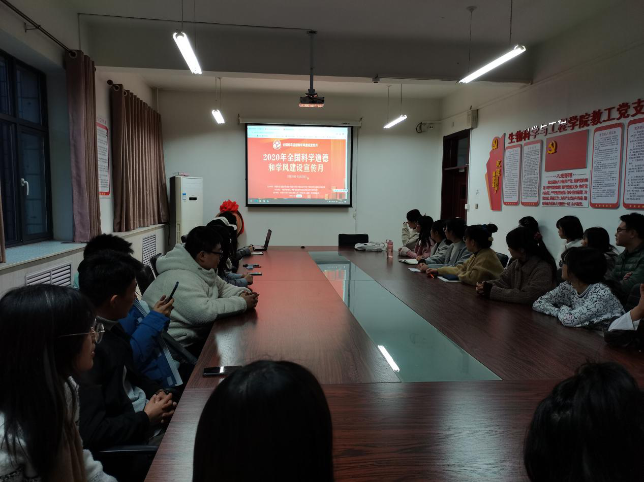 2020年11月20日下午,明胜m88官网组织全体研究生在实验中心210收看了“弘扬科学家精神、肩负新时代科技使命”为主题的2020年全国科学道德和学风建设宣讲教育报告会。